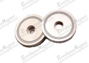 The internal threaded mounting pot magnet is a pot magnet that has a threaded hole in the centre of the ferromagnetic mild steel cup and a solid disc magnet inserted inside the cup. The threaded section does not go all the way through the pot magnet - it is only within the mild steel cup section. Pot Magnets for Mounting Applications